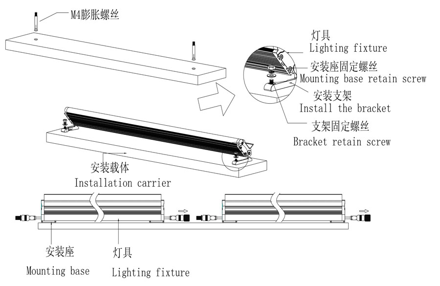 | 燈體材質:鋁型材+鋼化玻璃+壓鑄鋁支架 | 燈體尺寸:Φ72*30*1000mm(長度可定制) | ||