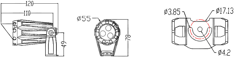 | 燈體材質(zhì):壓鑄鋁+鋼化玻璃+沖壓支架 | 燈體尺寸:Φ55*85mm (可帶遮光罩) | ||