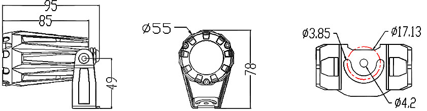 | 燈體材質(zhì):壓鑄鋁+鋼化玻璃+沖壓支架 | 燈體尺寸:Φ55*85mm (可帶遮光罩) |