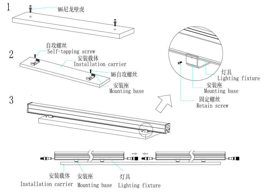 | 燈體材質:鋁型材(6063)+鋼化玻璃+PC面罩+鋁支架 | 燈體尺寸:Φ60*60*1000mm(可定制長度) | ||