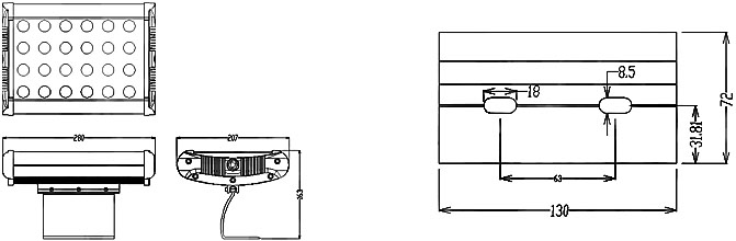 | 燈體材質: 壓鑄鋁+鋼化玻璃+沖壓支架+高效光學級透鏡 | 燈體尺寸: 207*280*163mm |