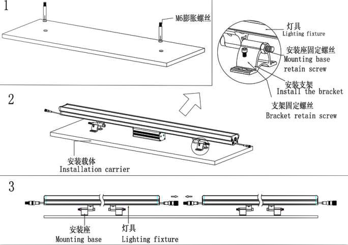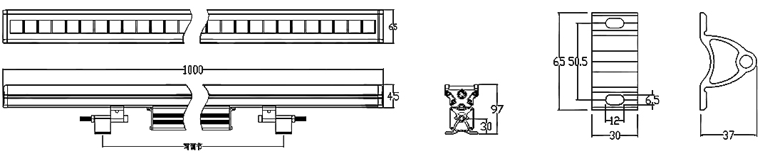 | 出線方式:單邊出線超出燈體15CM | 電源安裝方式:一體外置式 | ||