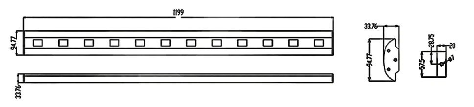 | 燈體材質:鋁型材(6063)+鋼化玻璃+鋁支架 | 燈體尺寸:Φ95*35*1200mm |