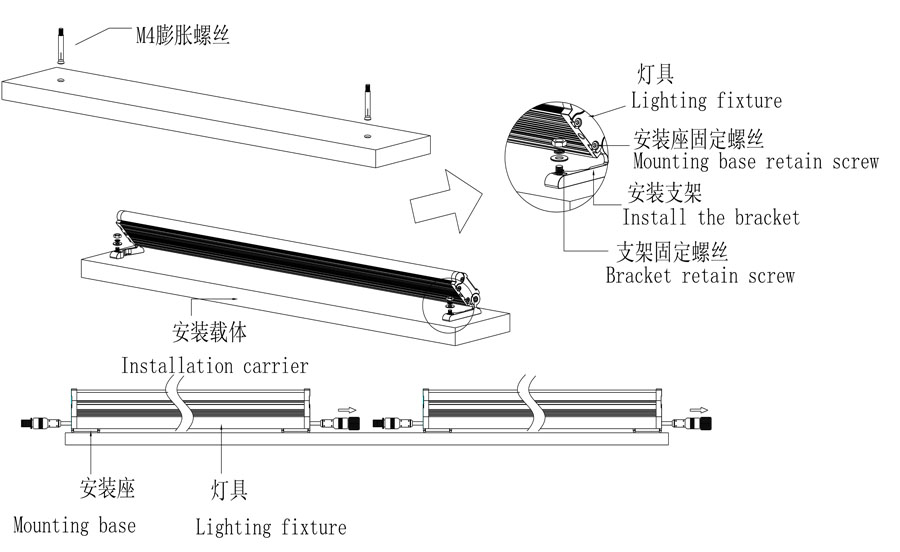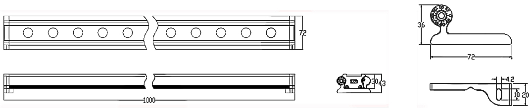 | 燈體材質:鋁型材+鋼化玻璃+壓鑄鋁支架 | 燈體尺寸:Φ98*30*1000mm(長度可定制) | ||