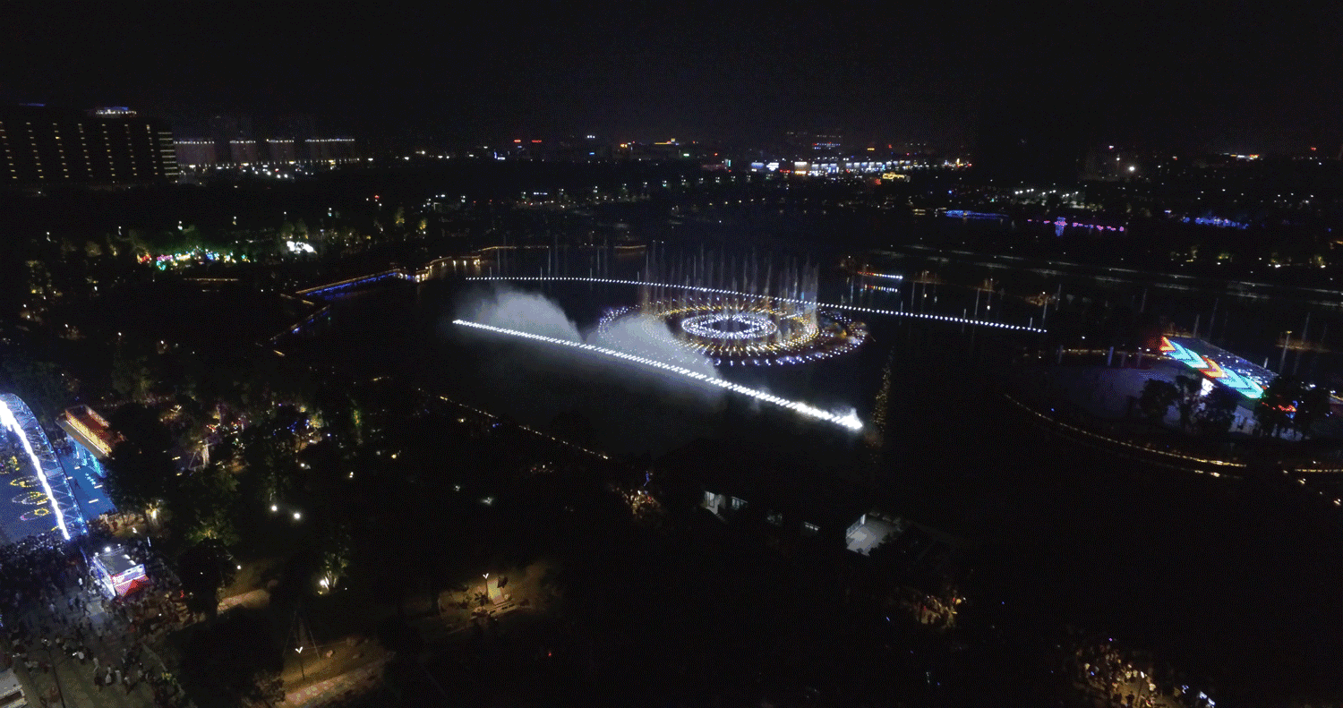 燈都生態(tài)濕地公園內(nèi)的3D光幕噴泉是本屆燈光文化節(jié)重磅推出的大型特色景點(diǎn)。該景點(diǎn)運(yùn)用噴泉、水幕、激光、投影、火焰、音樂(lè)等國(guó)際流行的多媒體藝術(shù)和技術(shù)成果,打造360度視角、噴射高度可高達(dá)160米的3D光幕水秀。將裸眼3D動(dòng)畫(huà)特效、光影互動(dòng),與頗具民族文化特色的現(xiàn)場(chǎng)音樂(lè)、舞蹈表演相結(jié)合,細(xì)膩入微的表演與唯美動(dòng)人的演繹,賦予光的新生命活力,淋漓盡致地展示燈都古鎮(zhèn)的特色文化,締造極具視覺(jué)和聽(tīng)覺(jué)沖擊的燈光盛會(huì)。