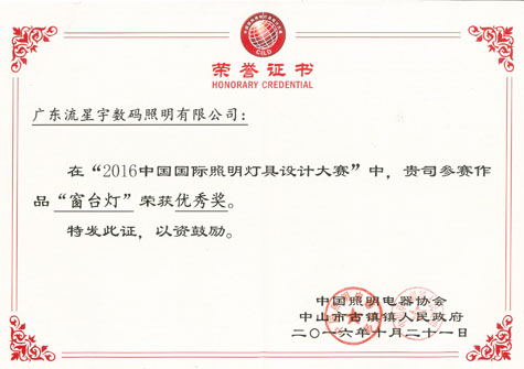 窗臺燈獲獎證書