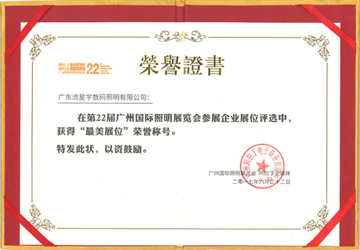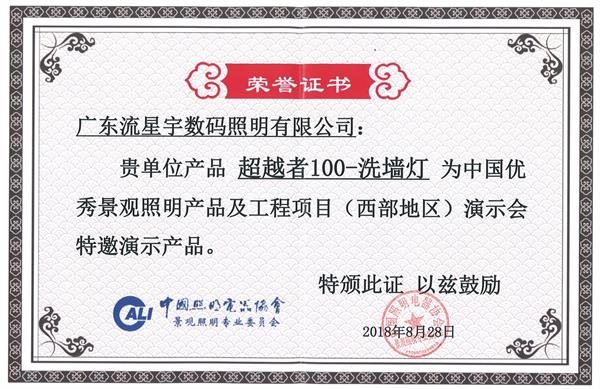 國際照明展榮譽證書