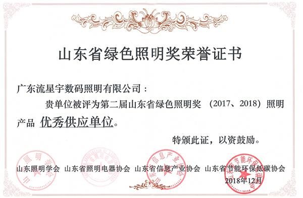 山東省綠色照明獎優秀供應單位