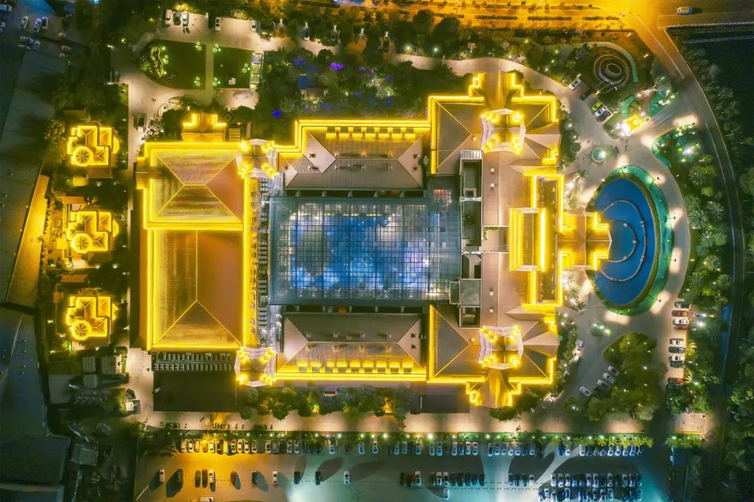 酒店照明設計從異國情調角度出發利用不同的建筑風格將其酒店品牌特色表現得淋漓盡致。夜景點明建筑風格,以建筑為主體,結合獨有建筑風格,利用現代泰式建筑定位燈光主題,突出自身亮點,用個性化的方式來勾勒整體酒店形象。
