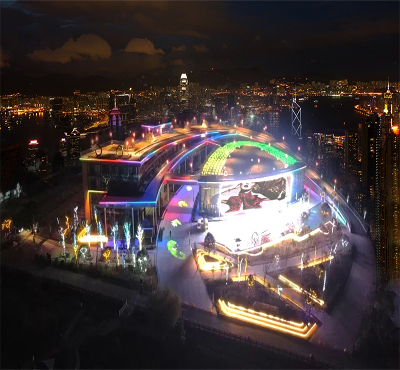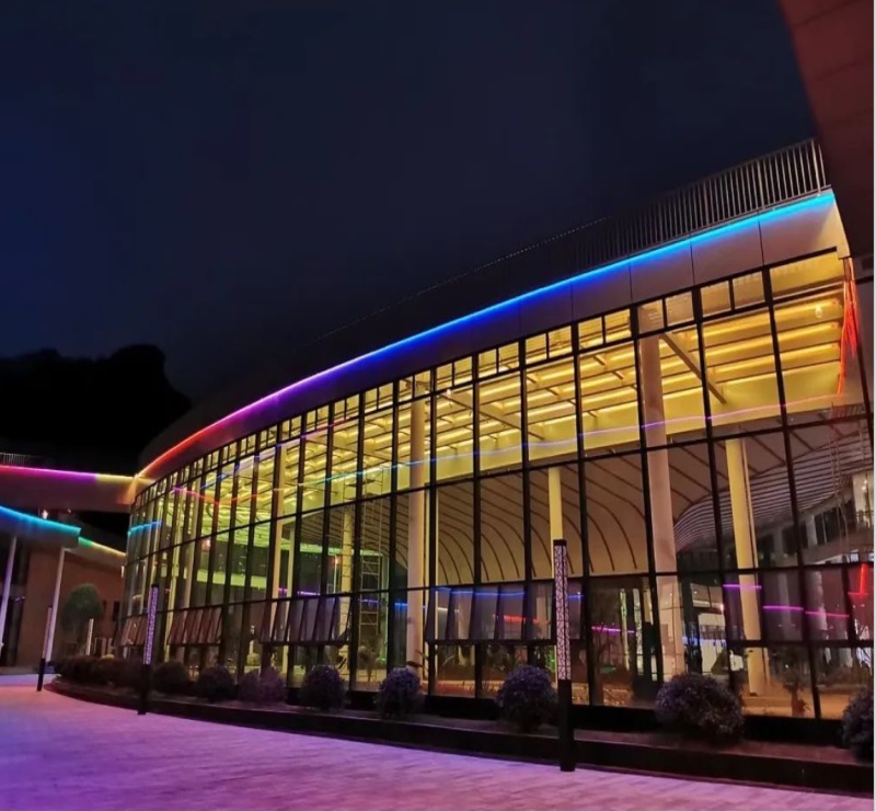廣西柳州柳江百朋鎮懷洪村內,百朋荷苑4A景區,最迷人的,最美的一面,就在夜幕降臨之后,游客中心周圍的璀璨燈光夜景。