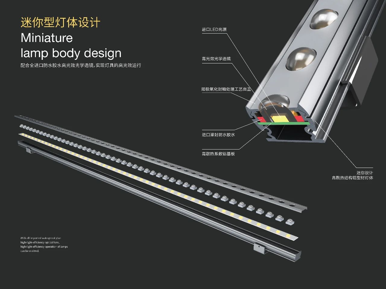 德欽縣氣候惡劣對燈具產品要求更高,項目燈具關鍵元件采用進口LED光源、進口光學透鏡,燈具常年在低溫底濕的環境保持光效均勻、色彩逼真。燈體采用結構灌膠防水設計;鋁材選用優質6063鋁型材,表面陽極氧化封油處理,確保產品外觀持久亮麗如新。