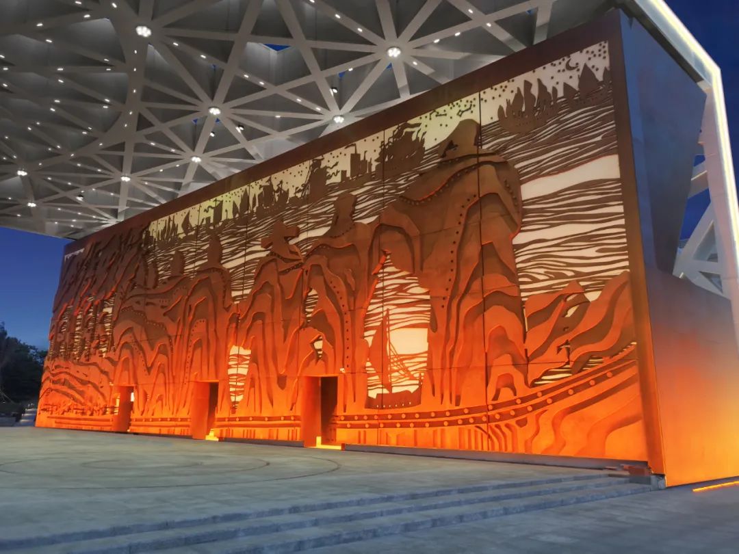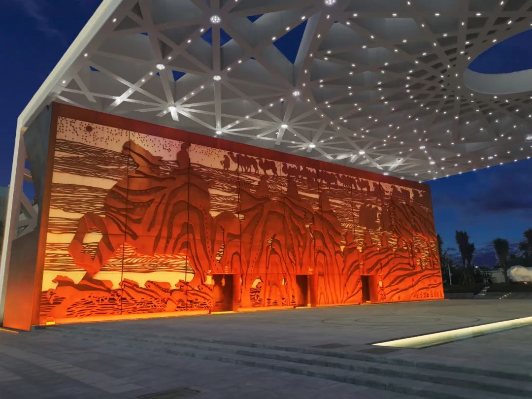 南海畫卷:通過表皮變化,創造出波濤起伏,云卷云舒的中國文化寓意,將祖國大好河山寓意到廣場整體效果。