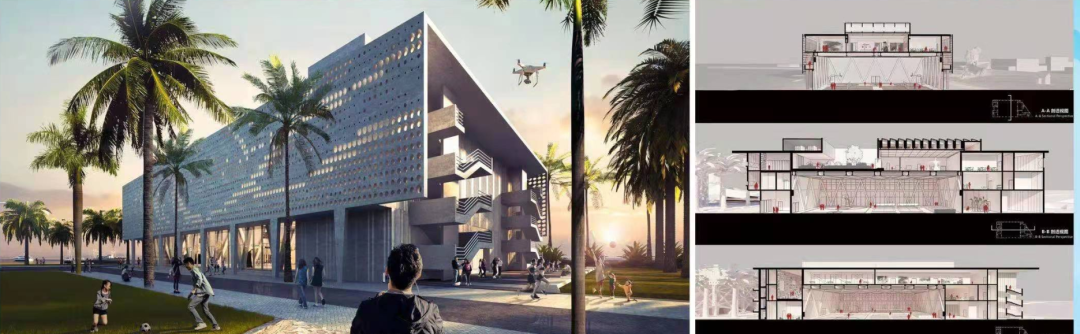 三沙客廳:大空間可滿足球館,會展,演出等不同功能文化用房與體育用房垂直分層滿足不同需求。球室兵乓球室。