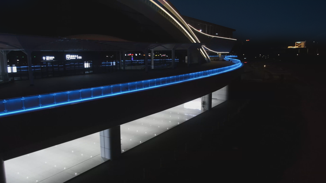 高鐵站形體配合光影,體現日出之意;夜景照明整體采用溫馨暖色光。