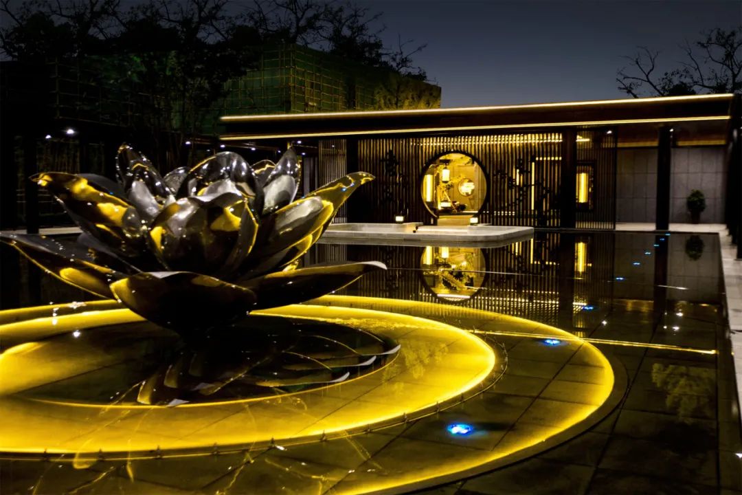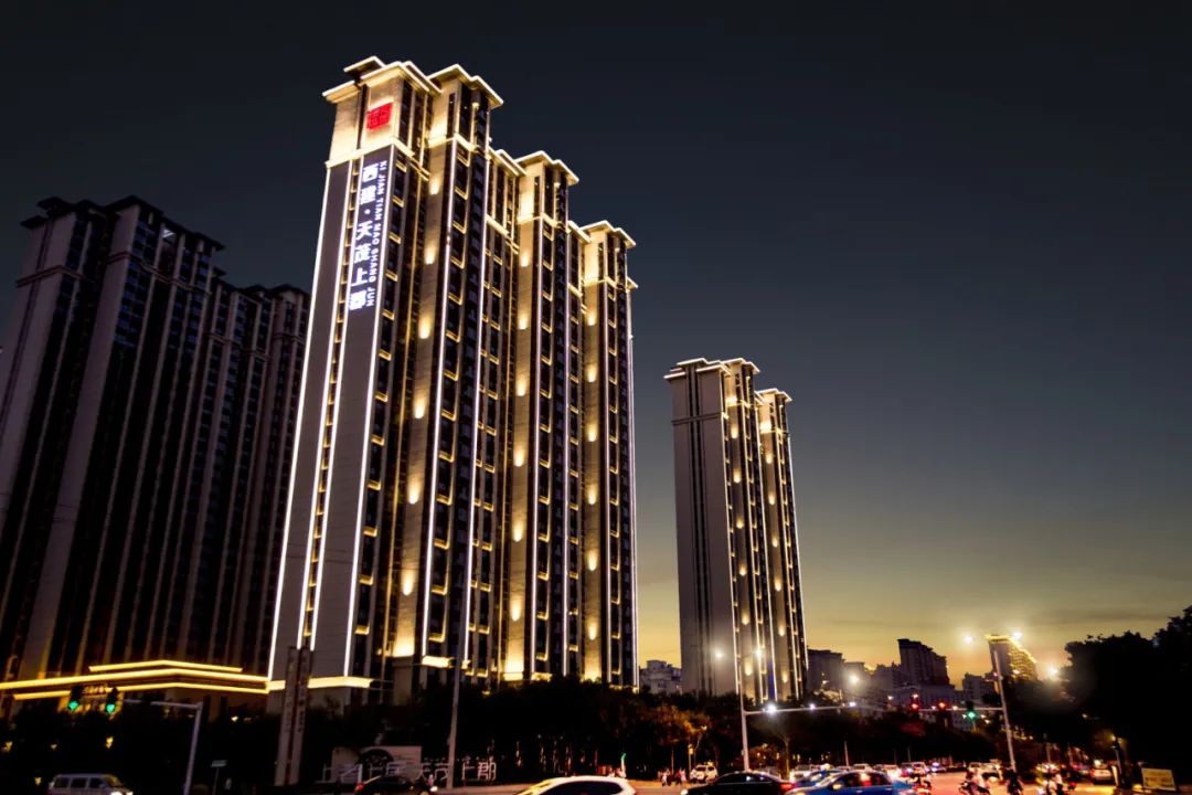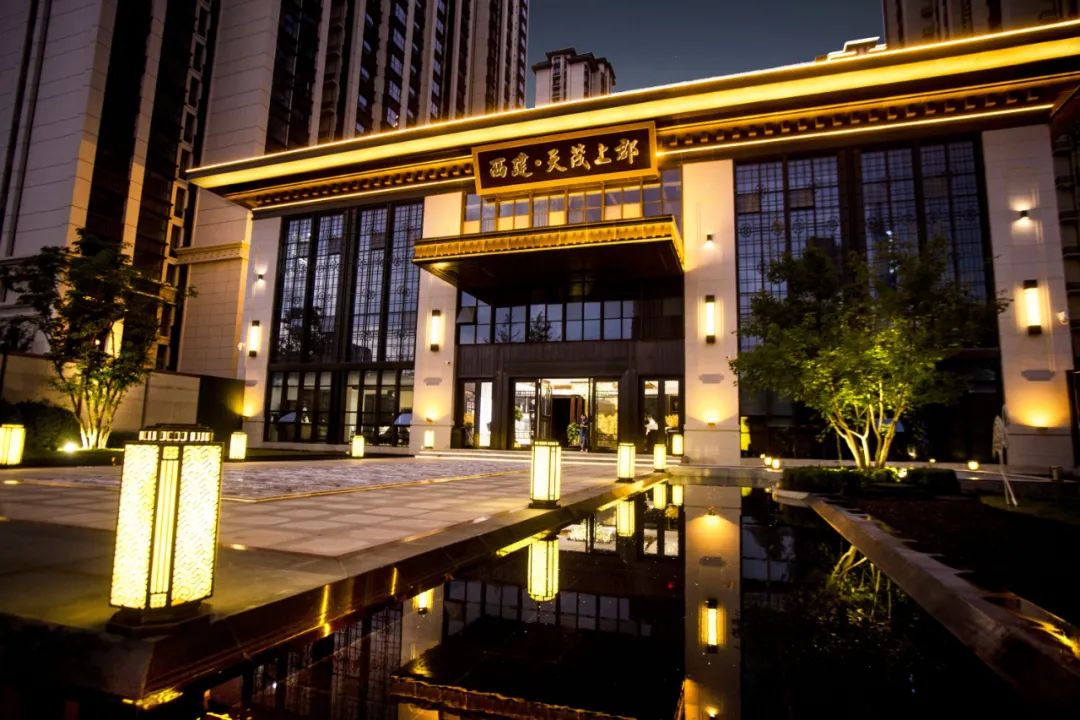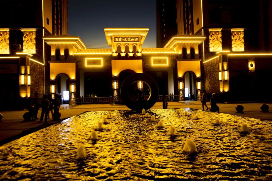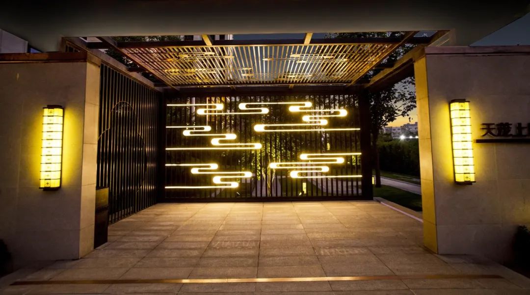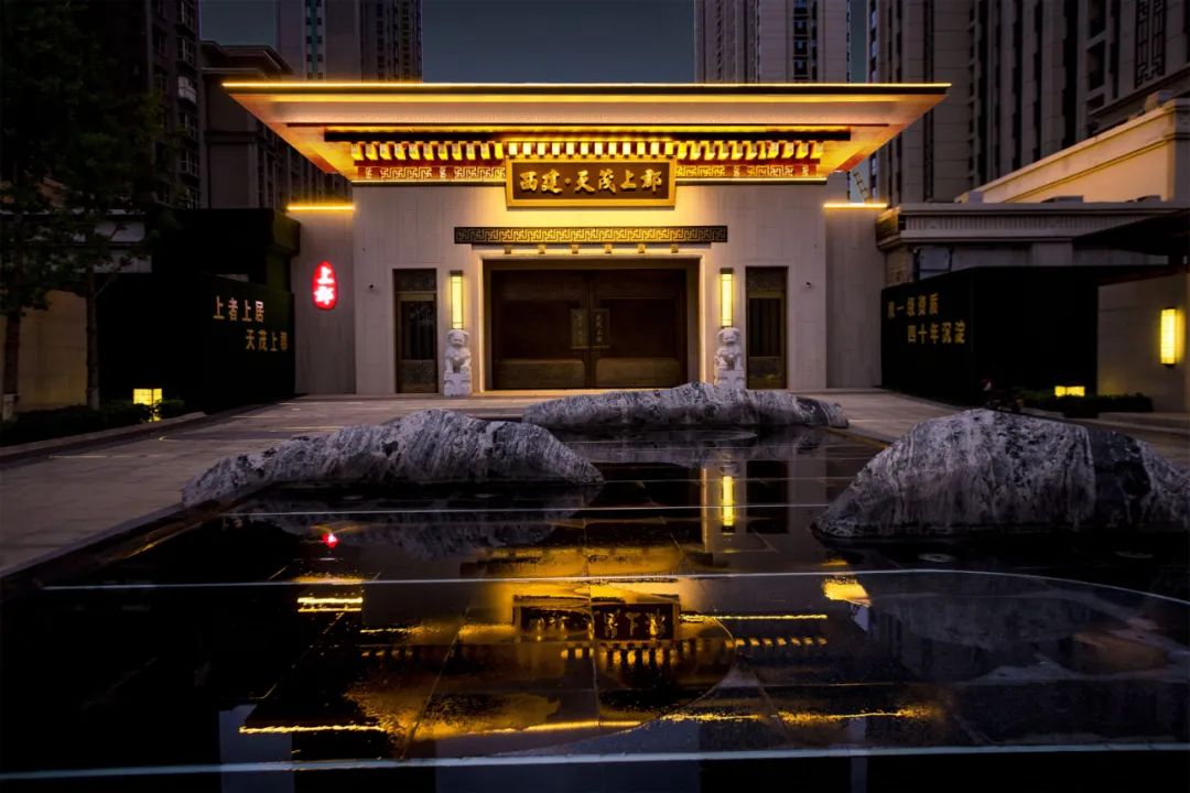天茂上郡采用新中式風格,以中國傳統的遞進式布局,入口軸線燈光強調序列感和儀式感,提升園區的夜景照明品質。