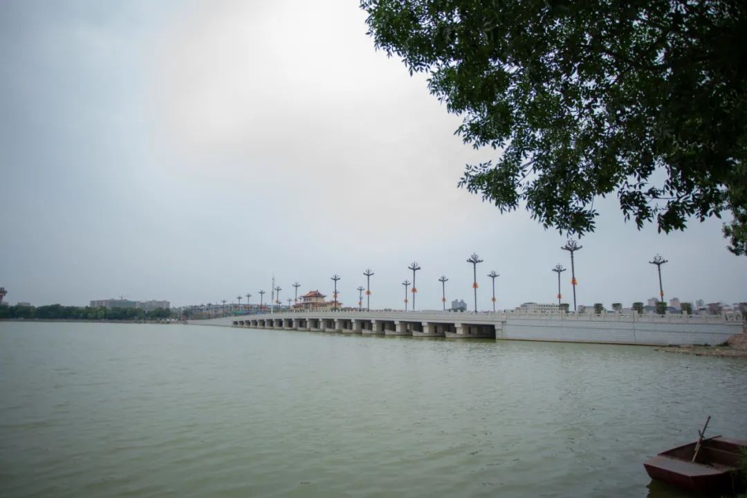 開封市最大的仿古景觀橋梁-迎賓橋位于開封城內迎賓路段中段,南北方向橫跨包公湖,橋長192.8米,引橋長187.2米。迎賓橋由主橋和引橋兩部分組成,其中主橋為17跨簡支梁雙幅橋,長192.8米。迎賓橋是開封市政、交通項目重點工程、重大基礎設施工程和重要路網融合工程。橋寬40米,雙向四車道,同步建有慢車道和人行道。