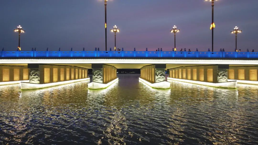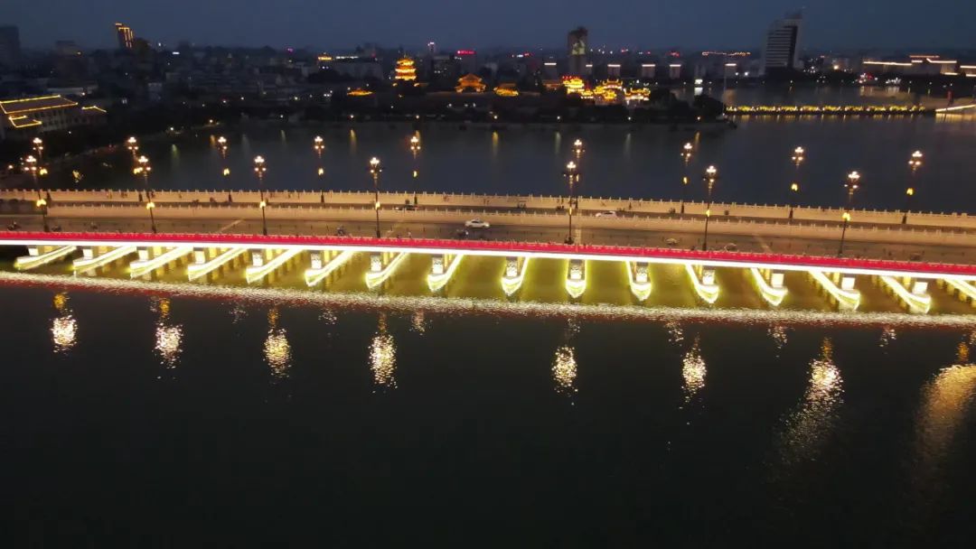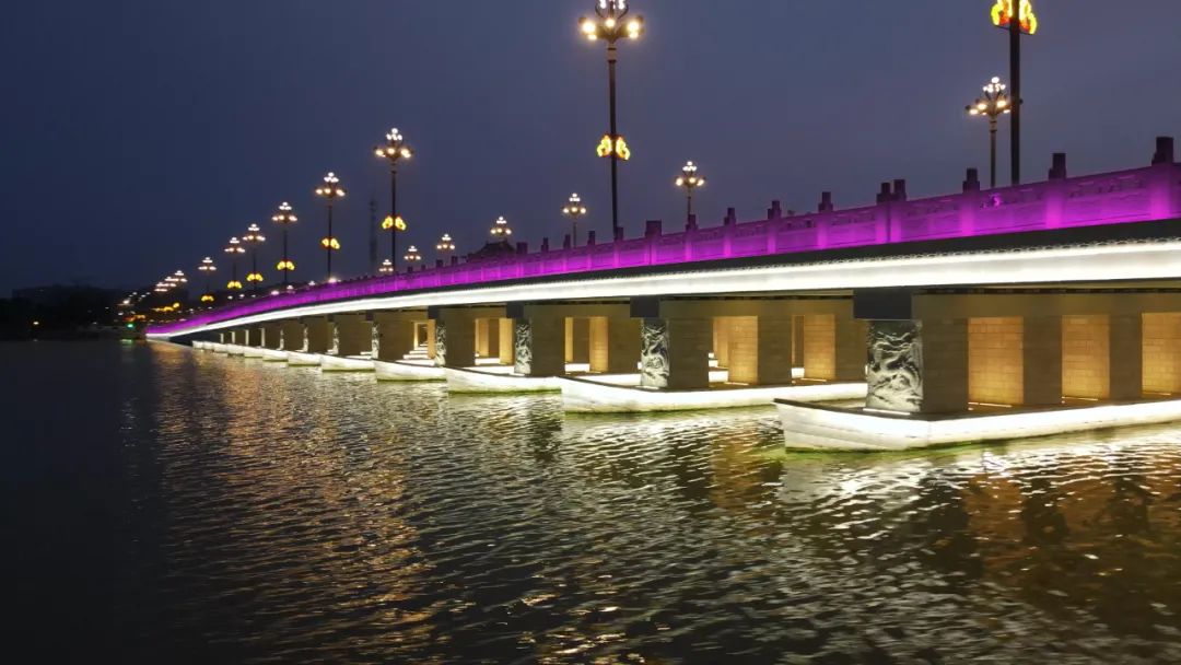 迎賓橋是開封市水系工程上的一座重要橋梁,橫跨包公湖南北兩岸,也是開封市的交通要道,其周邊涵蓋清明上河園、包公祠、開封府及大相國寺等重要旅游景區,迎賓橋亮燈極大地促進開封市旅游產業的發展,為開封市的經濟騰飛插上翅膀。
