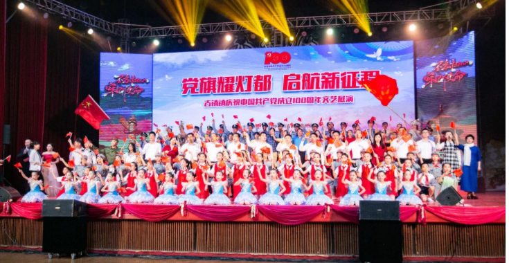 黨旗耀燈都,啟航新征程”中山市古鎮鎮慶祝中國共產黨成立100周年文藝展演在古鎮鎮體育館舉行。文藝展演分為序、星火燎原、南國魚桑、璀璨燈都、英姿勃發等篇章。