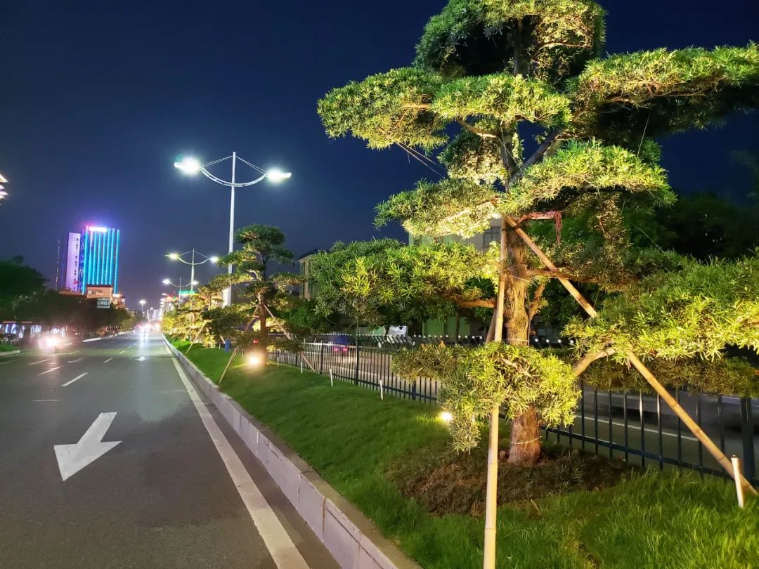 在中山阜沙主要街道,路面干干凈凈,道路兩邊房屋建筑上的燈光相互映照;夜景照明利用綠地、商圈、廣場、樓體等載體,進一步提升景觀照明檔次和水平,使得城市夜景更加靚麗,城市品質顯著提升。