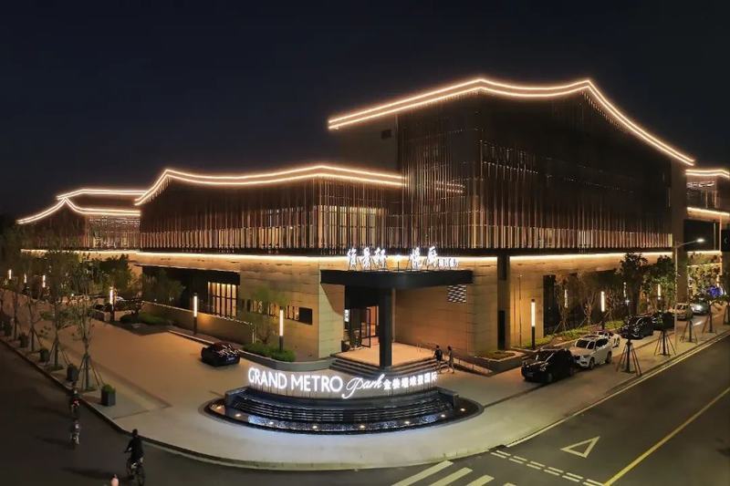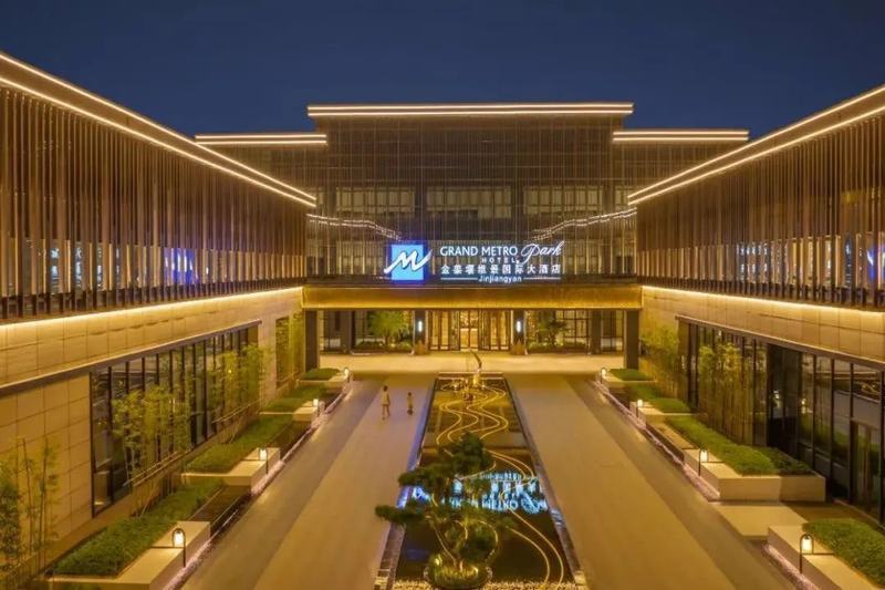 金姜堰維景國際大酒店建筑的幾何造型簡約而不失美感。燈具的細節處理精湛,照明呈現出了極致的美感,充滿了視覺沖擊力。